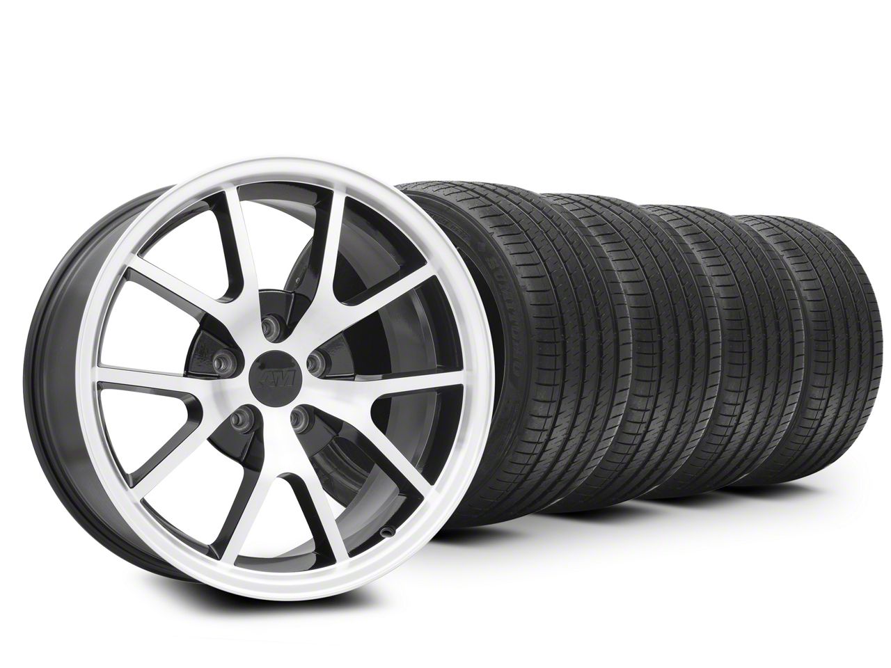 Easy "One Click" Shopping. We have combined our most popular wheels and tires together into an easy "one click" to buy combo kit. This combo kit features four wheels and tires that are the exact specifications for your year Mustang for a guaranteed perfect fit with no rubbing or clearance issues.