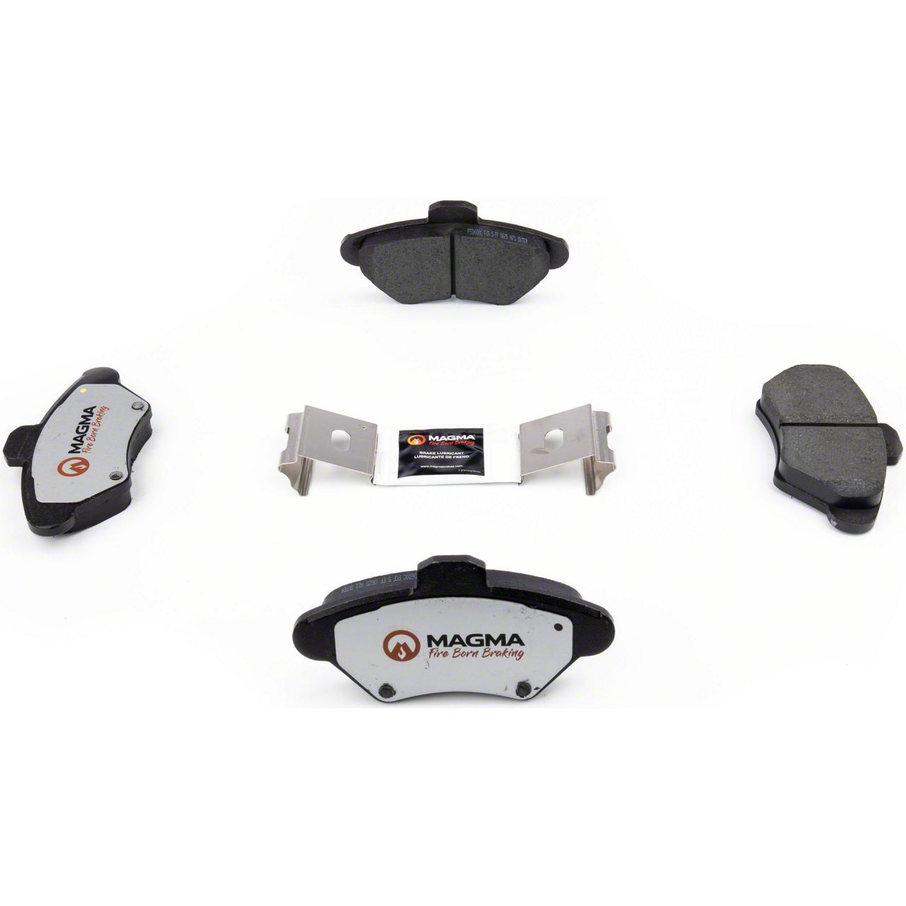 WHY MAGMA? - Today's harsh stop and go environment can create very high heat levels in your braking system which can reduce the vehicle's ability to stop. Extreme high temperatures can be reached in many braking situations such as - Stop and Go Traffic, Mountain Driving, Hauling or Towing, Emergency Stops, Spirited Driving and Long, Sustained Braking. At MAGMA Brakes, we use FIRE to fight FIRE. Our brake system components are made using advanced, state of the art techniques and treatments that ensure our brakes will stand up to the heat. MAGMA Pro-Series brake pads feature... 1. Scorched, copper free friction formulations for overall ltimate braking performance 2. Vulcanized OE style rubber core shims for unsurpassed noise suppression 3. Heat-tempered upgraded dual-coated stainless steel hardware kits to restore the brake pad to caliper interface to "like new" condition (where applicable) 4. Heat expansion OE style slots and chamfers to dissipate noise and stand up to the heat 5. High-heat resistant brake lubricant included for lubricating critical points during pad installation
