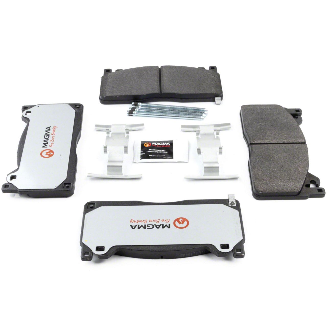 WHY MAGMA? - Today's harsh stop and go environment can create very high heat levels in your braking system which can reduce the vehicle's ability to stop. Extreme high temperatures can be reached in many braking situations such as - Stop and Go Traffic, Mountain Driving, Hauling or Towing, Emergency Stops, Spirited Driving and Long, Sustained Braking. At MAGMA Brakes, we use FIRE to fight FIRE. Our brake system components are made using advanced, state of the art techniques and treatments that ensure our brakes will stand up to the heat. MAGMA Pro-Series brake pads feature... 1. Scorched, copper free friction formulations for overall ltimate braking performance 2. Vulcanized OE style rubber core shims for unsurpassed noise suppression 3. Heat-tempered upgraded dual-coated stainless steel hardware kits to restore the brake pad to caliper interface to "like new" condition (where applicable) 4. Heat expansion OE style slots and chamfers to dissipate noise and stand up to the heat 5. High-heat resistant brake lubricant included for lubricating critical points during pad installation