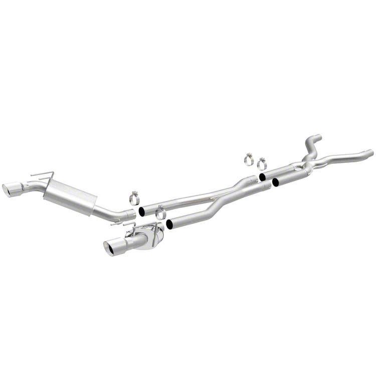 Direct Bolt-on Upgrade. Magnaflow's Competition Series Cat-Back Exhaust with X-Pipe bolts straight up in the stock location with no cutting or extra modifications required. Installation of this Magnaflow Cat-Back can be completed in about two to three hours with just basic hand tools. This Cat-Back reuses the existing factory hangers for installation.