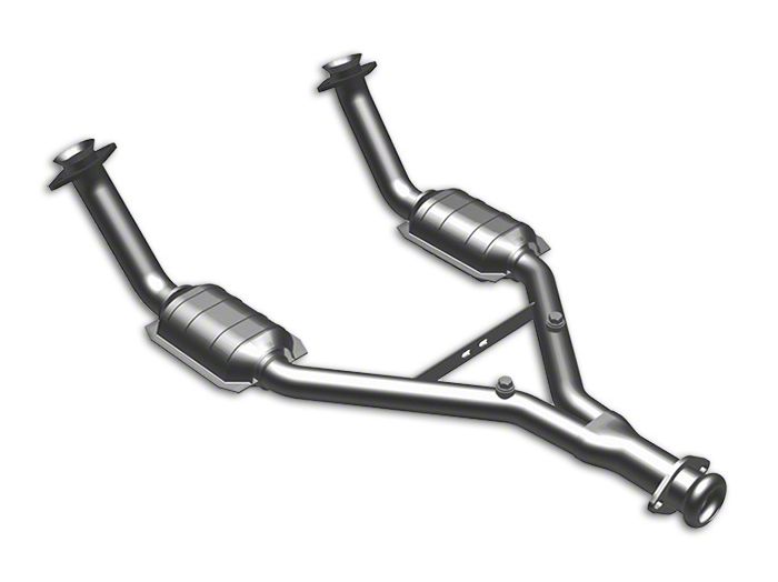 Enhance Performance. If you want an effective and easy way of improving the power and torque of your Mustang, you should invest in this Magnaflow Direct-Fit Catted Y-Pipe. You will enhance both performance and power when you replace your restrictive OEM converters with one from Magnaflow. This Y-pipe can utilize your factory manifolds and aftermarket shorty headers.