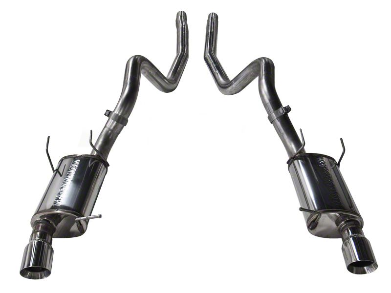 Classic Muscle Car Sound. The Magnaflow Cat-Back Exhaust System includes a set of two Street Series Mufflers that feature a free-flowing, straight-through perforated stainless steel core, with stainless mesh wrap and acoustical fiber fill to deliver that smooth, deep muscle car tone.