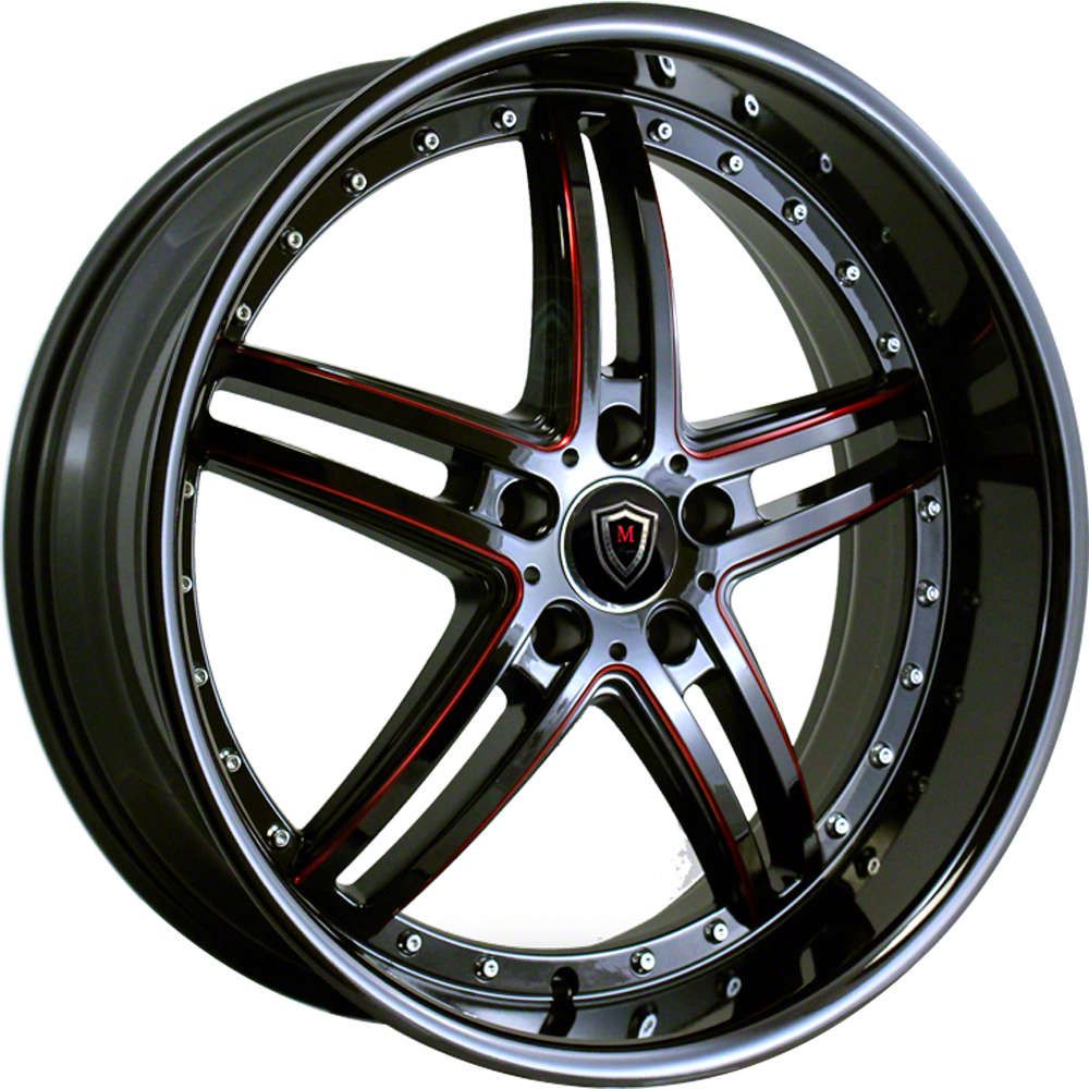Marquee Wheels M5329 Gloss Black with Red Milled Accents Wheel; 20x9. The Marquee Wheels M5329 Gloss Black with Red Milled Accents Wheel offers a striking balance of style and refinement. Its unique design accentuates the vehicle's aesthetic, while the premium construction underscores its robust nature. This wheel is a perfect choice for those seeking both elegance and a strong visual statement.