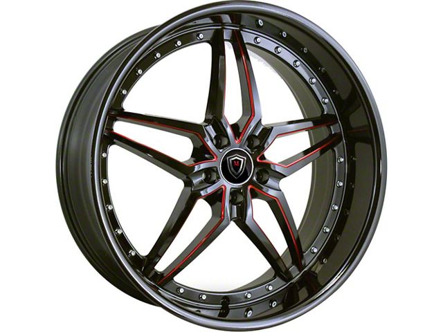 This 20x10.5 Marquee Wheels M5331A Gloss Black with Red Milled Accents Wheel is completed in a high-quality gloss black finish with striking accents that will be the envy of everyone. There's a durable clear coat that protects against driving hazards.