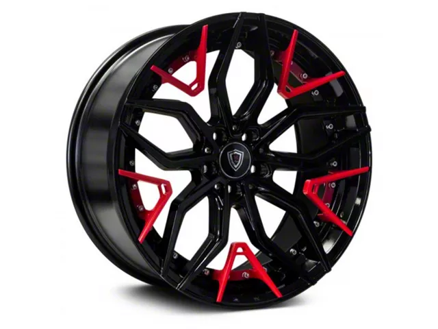 Marquee Wheels M3371 Gloss Black with Red Spoke Accents Wheel; 20x9 showcases an exquisite blend of elegance and charisma, perfect for any vehicle aiming for that standout appearance. With its unique design, it not only amplifies the aesthetic appeal of your ride but also complements various vehicle styles. This wheel, stemming from the legacy of Marquee Wheels, embodies a premium look that's hard to resist.