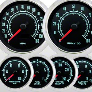 Includes:6921 2-1/16" Volts6933 2-1/16" Oil Pressure6934 2-1/16" Water Temperature6944 2-1/16" Fuel Level6951 3-3/8" Tachometer6952 3-3/8" SpeedometerThrough-Dial LED LightingMarshall 60's Muscle gauges include sophisticated 2 color white and amber through-the-dial LED lighting.
