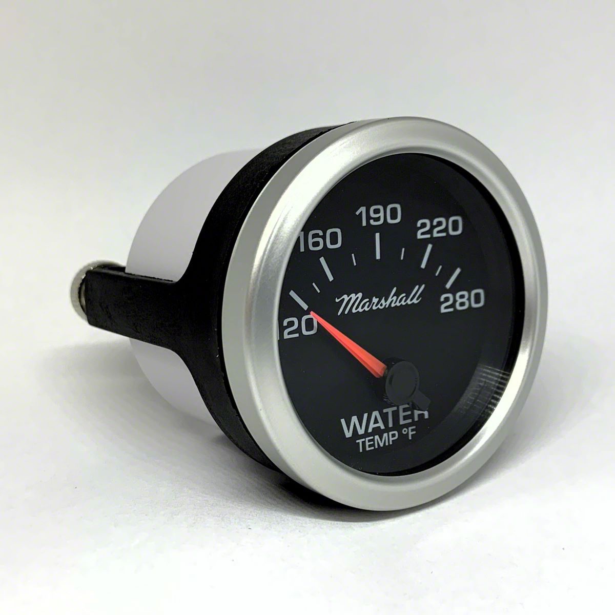 Marshall Temperature GaugesMarshall 2-1/16" temperature gauges are available in a variety of dial colors and bezel options. Marshall temperature gauges feature a precise stepper motor movement and through dial LED backlight with illuminated pointer for easy viewing at night.Marshall Comp II LED and SCX temperature gauges include temperature sender, u-clamp, connectors and instructions. SCX water and transmission temperature gauges use the 9201 temperature sender. Comp II LED temperature gauges and the SCX 140-280F oil temperature gauges use the 9204 temperature sender.Made in the U.S.A.This product is proudly made in Anaheim, California USA.Through-Dial LED LightingMarshall gauges feature through-the-dial LED lighting and glowing 3D pointer for a cool look and easy viewing at night.