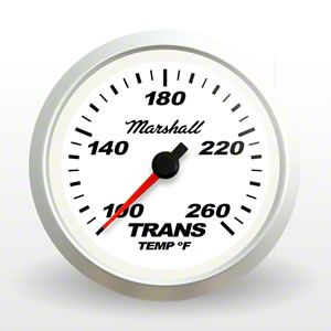 Gauge Type: Trans TemperatureGauge Range: 100-260FSender Included: 9201Marshall Temperature GaugesMarshall 2-1/16" temperature gauges are available in a variety of dial colors and bezel options. Marshall temperature gauges feature a precise stepper motor movement and through dial LED backlight with illuminated pointer for easy viewing at night.Marshall Comp II LED and SCX temperature gauges include temperature sender, u-clamp, connectors and instructions. SCX water and transmission temperature gauges use the 9201 temperature sender. Comp II LED temperature gauges and the SCX 140-280F oil temperature gauges use the 9204 temperature sender.Made in the U.S.A.This product is proudly made in Anaheim, California USA.Through-Dial LED LightingMarshall gauges feature through-the-dial LED lighting and glowing 3D pointer for a cool look and easy viewing at night.