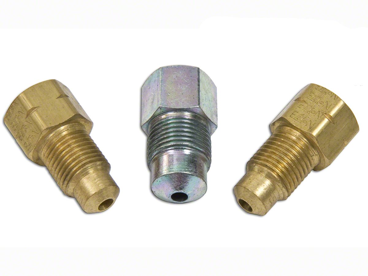 Manufacturer’s Note. These fittings do not fit the stock proportioning valve or the stock brake lines. An adjustable proportioning valve (BPV-1) is recommended for use to ensure optimized performance.