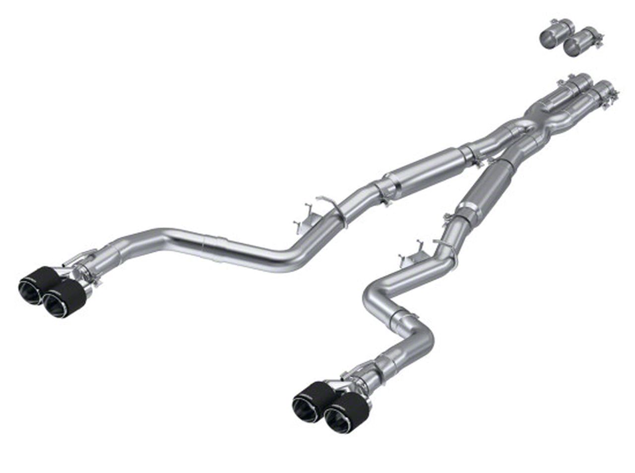 T-304 Stainless Steel Construction. MBRP proudly manufactures their Pro Series Cat-Back Exhaust systems from 3.0-inch diameter, mandrel-bent, heavy duty, T-304 stainless steel tubing for excellent exhaust flow and corrosion resistance. Besides the crossover X-pipe, this system features a pair of high-flow resonators that end with quad, 4-inch, carbon fiber exhaust tips that feature the MBRP logo.