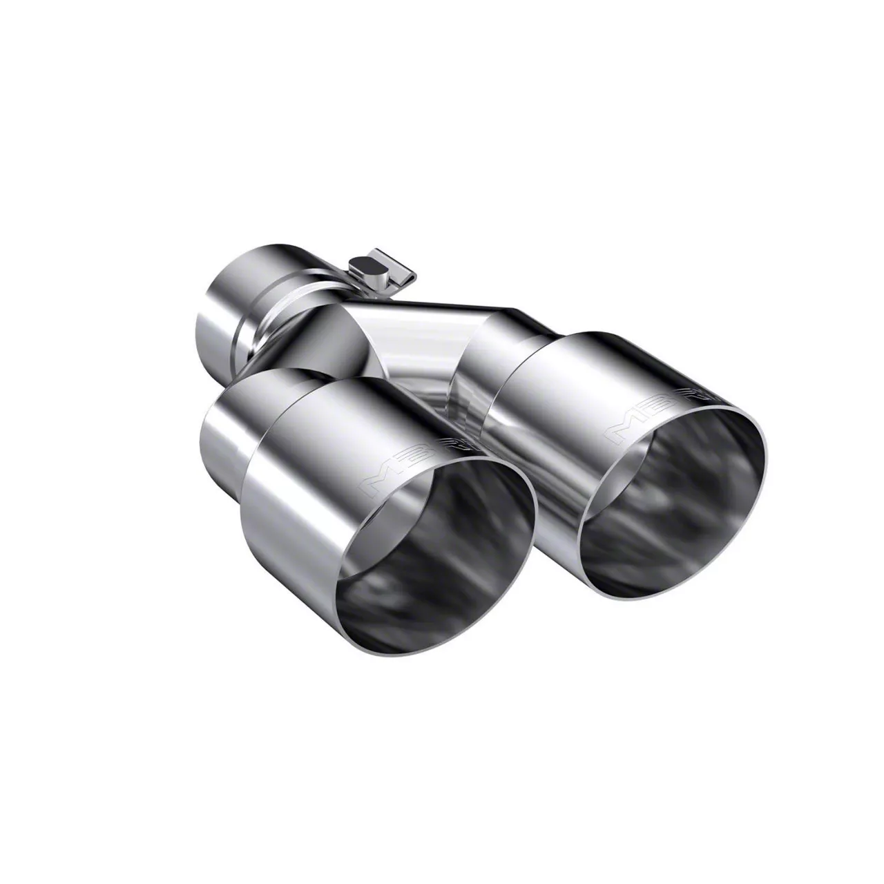 Application. The MBRP Angled Cut Dual Round Exhaust Tip; 3.50-Inch; Polished; Driver Side fits 2.50-Inch Tailpipes.