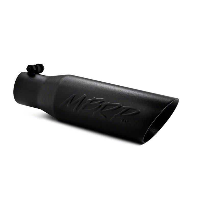 Application. The MBRP Angled Cut Dual Wall Exhaust Tip; 3.50-Inch; Black fits all 2.50-Inch Tailpipes.
