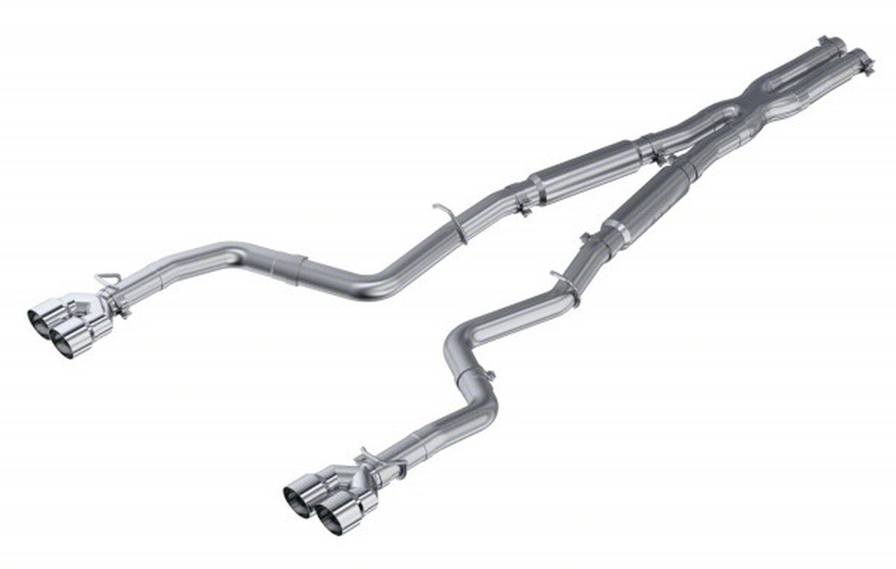 Aluminized Steel Construction. MBRP proudly manufactures their Installer Series Cat-Back Exhaust systems from 3.0-inch diameter, mandrel-bent, heavy duty, aluminized 16-gauge steel tubing for excellent exhaust flow and corrosion resistance. Besides the crossover X-pipe, this system features a pair of high-flow resonators that end with quad, 4-inch, polished stainless steel exhaust tips that feature the embossed MBRP logo.