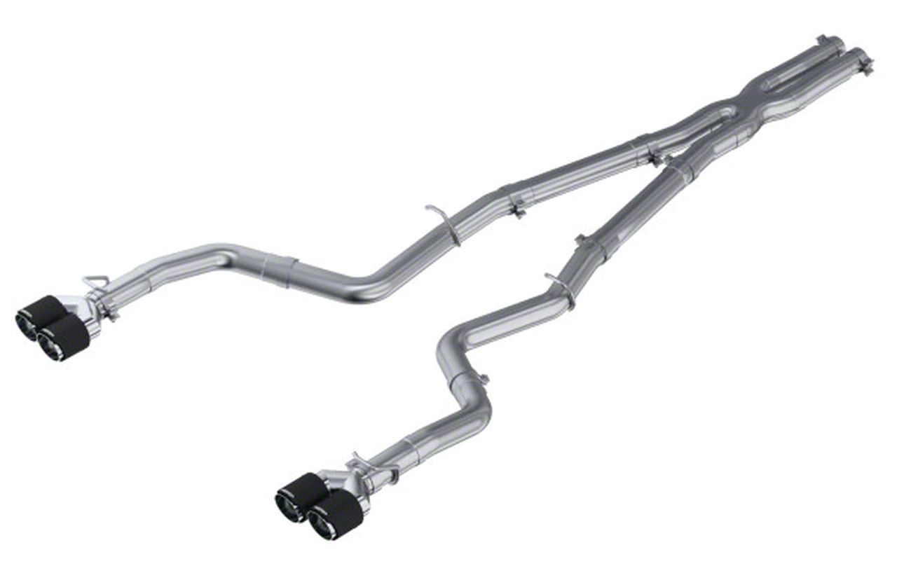 T-304 Stainless Steel Construction. MBRP proudly manufactures their Pro Series Cat-Back Exhaust systems from 3.0-inch diameter, mandrel-bent, heavy duty, T-304 stainless steel tubing for excellent exhaust flow and corrosion resistance. Besides the crossover X-pipe, this system features a pair of quad, 4-inch, carbon fiber exhaust tips with MBRP logo.