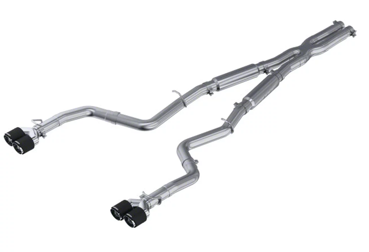T-304 Stainless Steel Construction. MBRP proudly manufactures their Pro Series Cat-Back Exhaust systems from 3.0-inch diameter, mandrel-bent, heavy duty, T-304 stainless steel tubing for excellent exhaust flow and corrosion resistance. Besides the crossover X-pipe, this system features a pair of high-flow resonators that end with quad, 4-inch, carbon fiber exhaust tips that feature the MBRP logo.