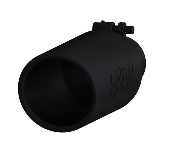 Application. The MBRP Angled Cut Rolled End Exhaust Tip; 4-Inch; Black fits all 2.50-Inch Tailpipes.