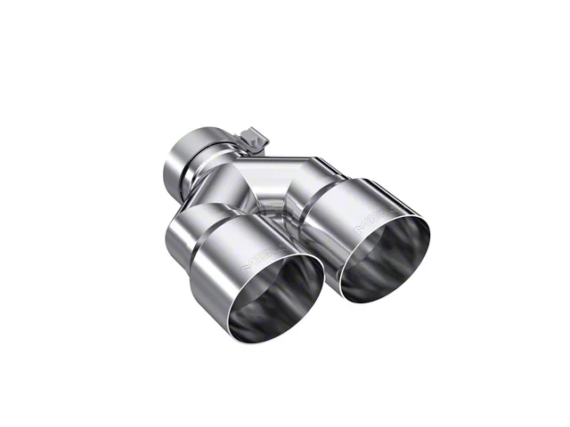 The Final Touch. Compliment the roaring sound of your new exhaust system with the 4-Inch Dual Exhaust Tip, Polished, and Fits 3-Inch Tailpipe. This dual exit exhaust tip has a 3-inch inlet and 4-inch outlet and will fit effortlessly with 3-inch tailpipes. It is placed on the driver's side and has a shiny mirror finish for a classic high-end look.
