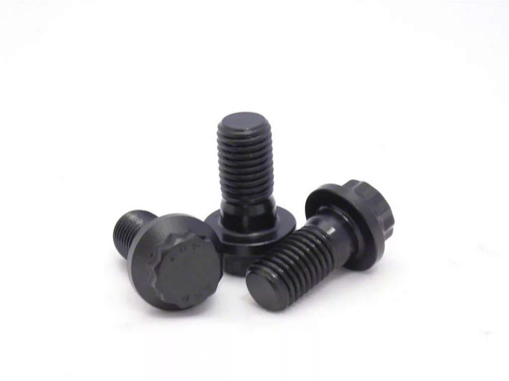 Construction and Appearance. Crafted from high-strength materials, these bolts are designed to endure intense conditions and maintain structural integrity. The set includes six bolts, precision-engineered for a direct replacement fit, ensuring secure and precise fastening in high-performance setups.