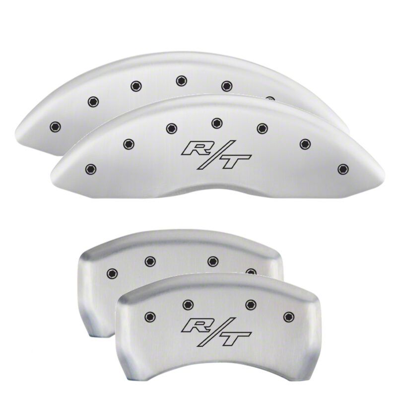 MGP Brake Caliper Covers with Vintage R/T Logo; White; Front and Rear (11-23 Challenger R/T; 2014 Challenger Rallye Redline; 17-23 Challenger GT, T/A; 12-23 Challenger SXT w/ Dual Piston Front Calipers)Find parts that fit my vehicle