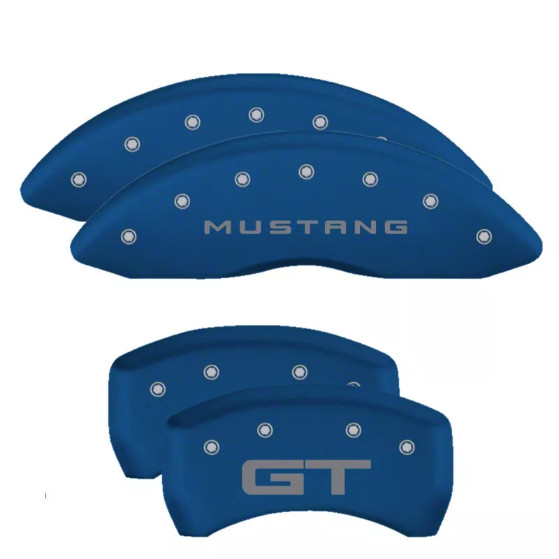 MGP Brake Caliper Covers with GT Logo; Blue; Front and Rear (15-23 Mustang GT w/o Performance Pack)Find parts that fit my vehicle