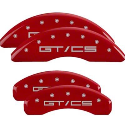 Description. Disc Brake Caliper Cover; Set of 4 caliper covers, Engraved Front: GT/CS - Egraved Rear: GT/CS, Red powder coat finish, silver characters