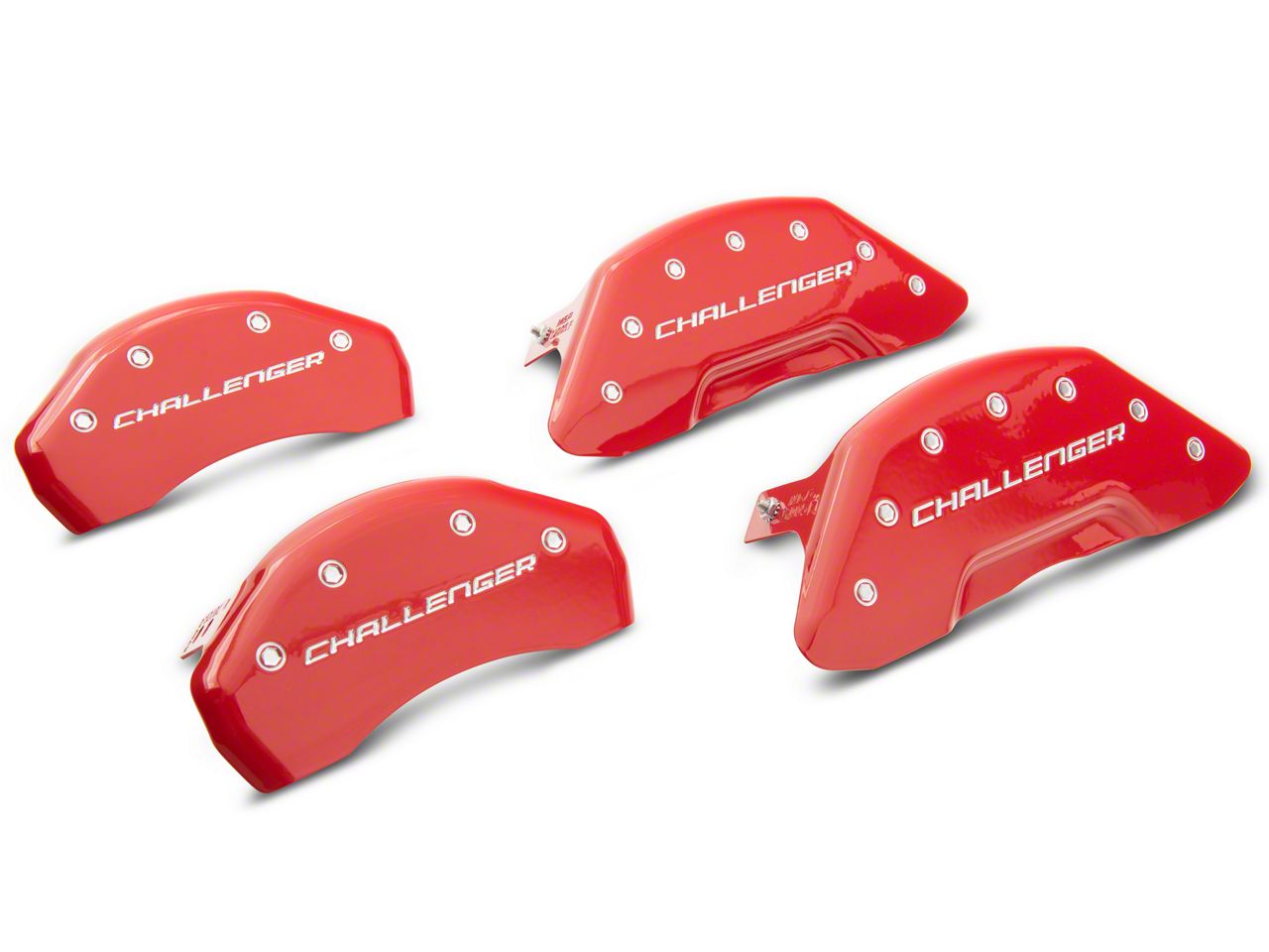 Great Upgraded Curbside Look. These MGP Red Caliper Covers with Challenger Logo are great for adding a custom element to your Dodge Challenger’s curbside appearance. These caliper covers feature a glossy red finish and CNC-engraved logo so you can easily hide the wear and signs of rusting on your brake calipers. These are engineered and hydraulically-formed to meet factory wheel clearances and match OE caliper configurations.
