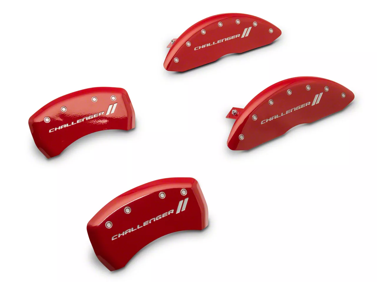 Upgrade Your Brake Caliper’s Style. It’s easy to get an upgraded look for your Dodge Challenger’s wheels by adding these MGP Red Caliper Covers with Challenger Stripes Logo. These are designed to hide your old and discolored brake calipers. Featuring bright red gloss finish and a stylish CNC-engraved silver logo, these caliper covers are a great alternative to having those old calipers painted.