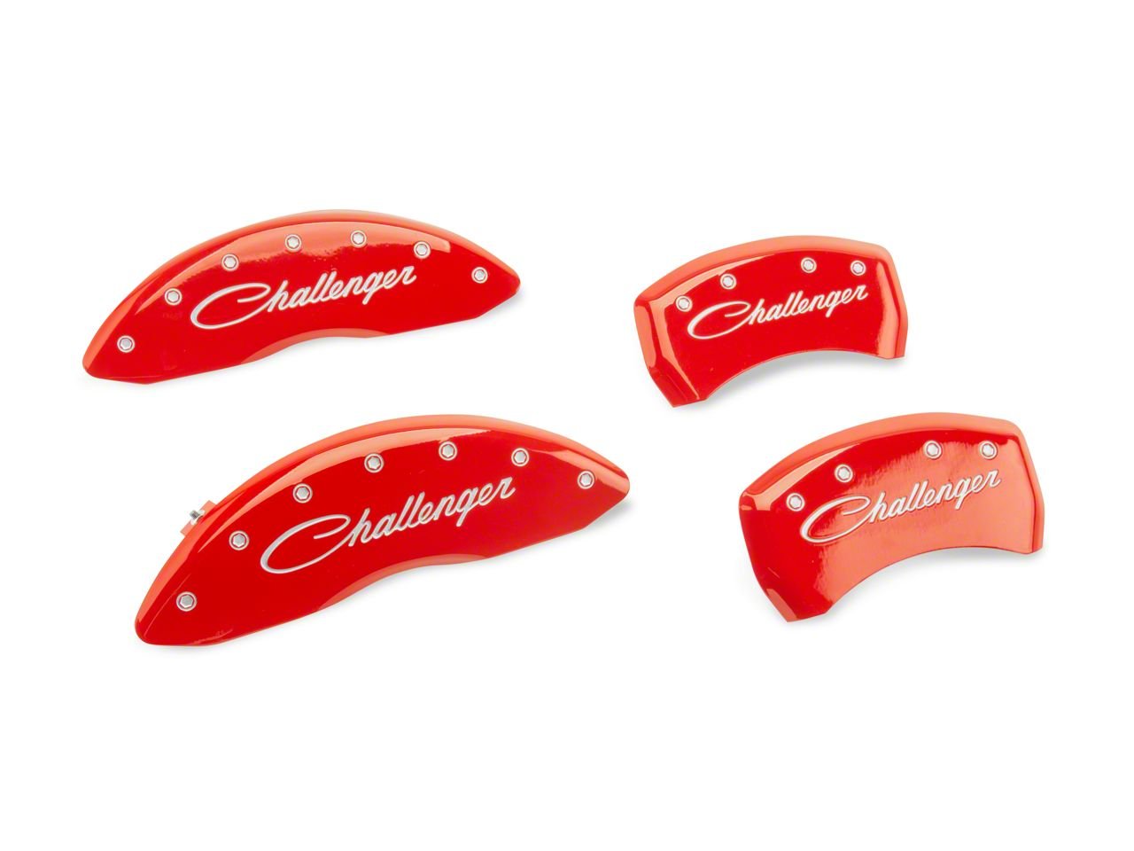 Remarkable Wheel Styling. If you want your Challenger to stand out from the rest, it may be time to get MGP Red Caliper Covers with Cursive Challenger Logo. These front and rear calipers are engraved with the “Challenger” logo in cursive font for a truly personalized look. As an added bonus, these cool caliper covers hide the unsightly stock brake calipers of your ride.