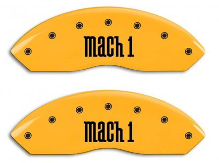 Great Looks. MGP Yellow Caliper Covers with a Mach 1 logo add color and style to the wheels on your 2003-2004 Mach 1 Mustang. This is a great solution to covering rusty brakes, and the quality construction ensures a vehicle-specific fit. Simple to install, this product is a head-turner.