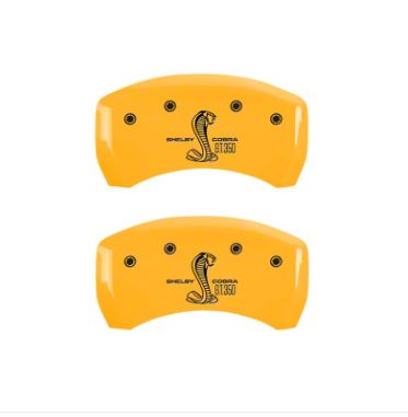 Easy Caliper Look Upgrade. The old brake calipers of your Ford Mustang will start showing signs of imperfections that can be seen between the spokes of the wheels. But with these MGP Yellow Caliper Covers with the Shelby GT350 Logo, you can effectively hide these imperfections while adding style on your wheels. With a bright yellow gloss finish and the bold CNC-engraved logo with black inlay, you get caliper covers that instantly upgrade your vehicle’s curbside appeal.