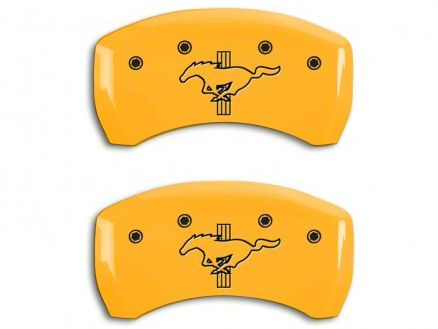 Application. This pair of MGP Yellow Caliper Covers with Tri-Bar Pony Logos fits 2012 to 2013 Ford Mustang BOSS 302 models.
