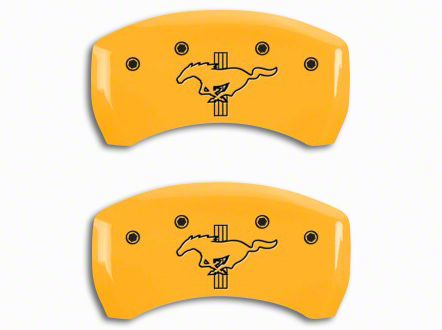 Classic American Symbol. One of the most recognizable logos in the world is the Ford Mustang Running Pony. Carry this iconic emblem on your MGP Yellow Caliper Covers. The yellow caliper covers with black engraved Mustang logo enhances the look of your calipers behind the rims. It gives your Mustang a sporty look and edgy vibe that can turn heads everywhere you go.