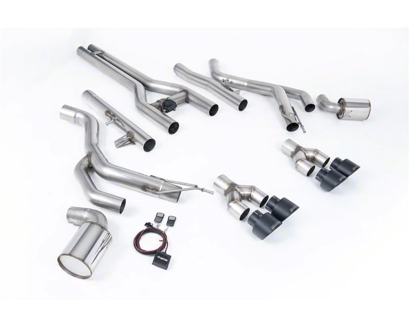 Direct Replacement. Made for the Dodge Challenger SRT Hellcat, this Milltek Active H Cat-Back Exhaust System comes in a raw metal finish. Built as a direct replacement for your broken, cracked, or warped stock exhaust, this part is crafted from 304L aircraft grade stainless steel. Made in the UK, this replacement part delivers a suitably aggressive tone and is a quad rear exit type with 4 Cerakote black tips.