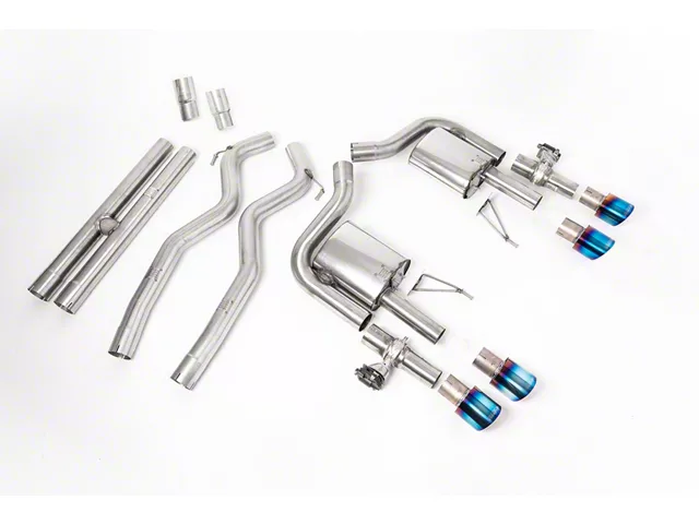 Unique and Iridescent Finish. The Milltek Active Valve Cat-Back Exhaust System's burnt titanium tips add a touch of high-performance elegance to your Mustang's rear end. Their unique, iridescent finish and angled design complement the aggressive exhaust note, creating a visual and auditory experience that's both exhilarating and sophisticated.