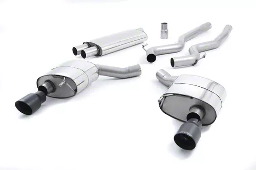 Performance and Style Upgrade. The Milltek Dual Outlet Resonated Cat-Back Exhaust System with Cerakote Black Tips is engineered to enhance both the acoustic and visual appeal of your Ford Mustang 2.3 EcoBoost Fastback. This system replaces the factory exhaust from the catalytic converter back, delivering a more aggressive exhaust note while maintaining daily drivability. Its dual outlet design and black Cerakote-finished tips provide a sleek, performance-oriented look that complements the Mustang's aesthetics.