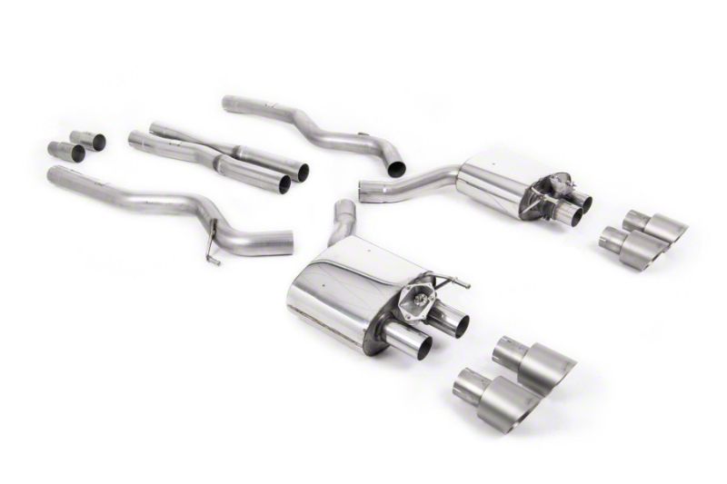 Quad-Tip Performance Upgrade. The Milltek Quad Outlet Cat-Back Exhaust System with Titanium Tips is engineered to enhance both performance and sound for late-model Mustang GT applications. Featuring an enlarged bore and precision mandrel-bent pipework, this system maximizes exhaust flow while preserving strong mid-range torque. It delivers a sporty, crisp exhaust note without unwanted drone or cabin resonance.