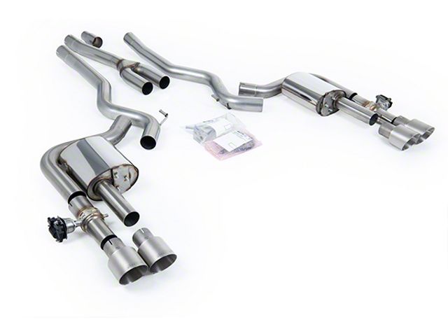 Application. This Milltek Quad Outlet Non-Resonated Cat-Back Exhaust System with Brushed Titanium Tips fits all 2024-2026 Ford Mustang EcoBoost Fastback Models with Active Exhaust.