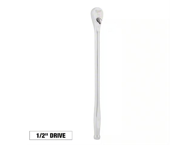 The MILWAUKEE® 1/2 in. Drive 18 in. Ratchet offers 4° of arc swing, allowing access to work in tighter spaces. The extended handle length provides increased leverage for stubborn nuts and bolts with a slim profile design and a flush directional lever for better accessibility. The all-chrome finish provides the ratchet with easy-cleaning. This Milwaukee extended reach ratchet is backed by their Mechanics Hand Tools Lifetime Guarantee.