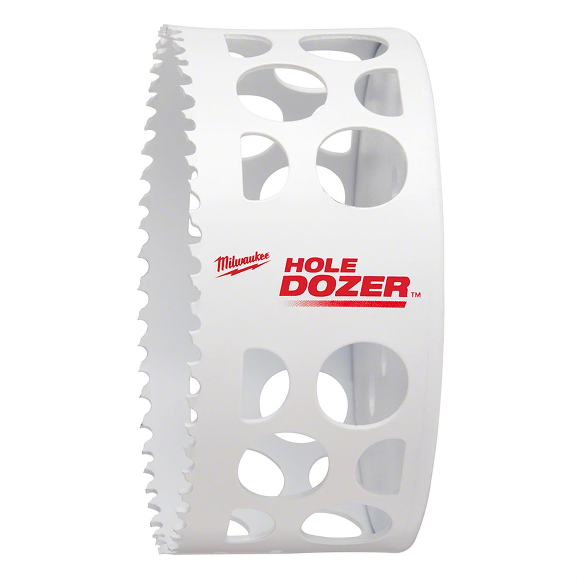 The MILWAUKEE® 4" HOLE DOZER™ Bi-Metal Hole Saws new 3.5 TPI tooth design offers the longest life in metal applications. These HOLE DOZER™ Bi-Metal Hole Saws feature the industry's only Lifetime Tooth Break Warranty and take on all general purpose applications, making them the most durable hole saws. Our ALL-ACCESS SLOTS solve the frustration of plug removal for more productivity with less downtime between holes. The new slot design also offers increased pilot visibility for accurate placement and faster chip ejection keeping the cut cool. HOLE DOZER™ Thermoset Coating allows for faster cutting and is optimized for cordless tools, delivering 25% more holes per charge. Milwaukee HOLE DOZER™ Bi-Metal hole saws are proudly made in the USA.