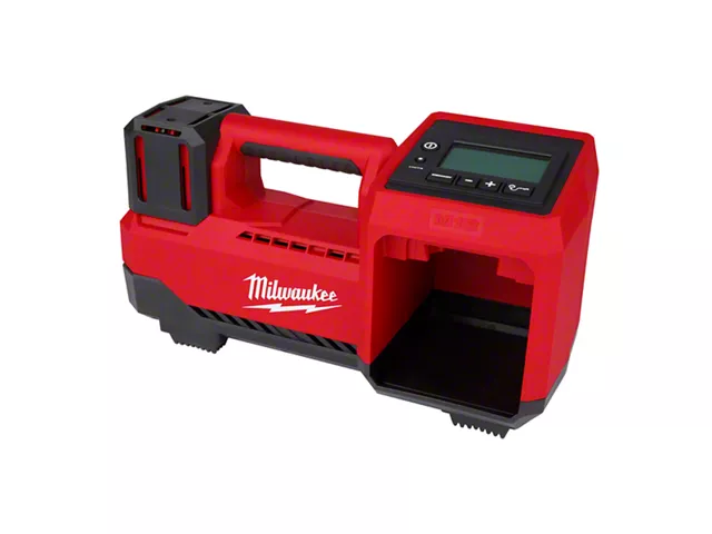 FASTEST 18V CORDLESS TIRE INFLATOR. The Milwaukee® M18™ Inflator delivers fast, accurate, easy inflation with the portability to take anywhere. Optimized for Passenger, Light Truck, and Other Medium Duty tires. Rated to deliver max 150PSI, the high efficiency motor tops-off 33” Light Truck tires in under 1 minute. The TrueFill™ Technology features an Auto-Pressure check that WAITS for the pressure to stabilize, CHECKS the system pressure, and FILLS until desired target is reached. In addition, an Auto Shut-Off feature will stop inflation at selected PSI to prevent overinflation allowing users to set it & forget it. Furthermore, the unit includes 4 PSI memory slots, anti-vibration feet, a 36” inch hose with an all-brass Schrader chuck, and an on-board hose and nozzle storage.?