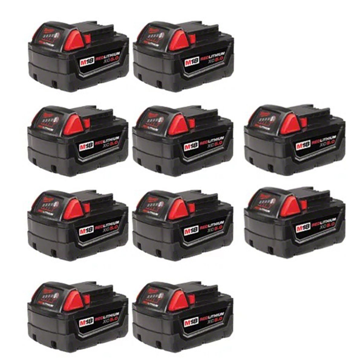 The M18™ REDLITHIUM™ XC5.0 10-Pack includes (10) M18™ 5.0Ah Battery Packs that deliver up to 2.5x more run-time than standard lithium. The packs deliver up to 20% more power than standard lithium which means faster application speed and increased application range for end users. With REDLITHIUM™ Protection the packs have industry leading protection against vibration/impact, water, and heat. M18 packs also have forward and backward compatibility with 125+ M18™ tools.