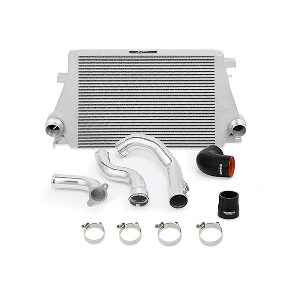Cooler Intake Temperatures. Gearing up your car with this Mishimoto Performance Intercooler Kit with Polished Piping and Silver Intercooler will help cool down its intake temperatures. Compared to other intercoolers on the market, this kit provides better cooling and heat transfer with its astounding volume increase. Specifically, this kit offers a 45% increase in internal core volume, 239% increase in external fin surface area, as well as 78% increase in core size.
