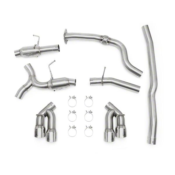 Hardwearing Build Quality. This cat-back exhaust utilizes plumbing made from 3-inch diameter 304 stainless steel tubes, offering maximum strength and corrosion resistance as a result. Additionally, these stainless steel tubes are mandrel-bent, creating a smooth turbulence-free inner surface for maximum exhaust gas flow. Likewise, all joints are expertly TIG-welded for added rigidity. Finally, this system comes with quad 4-inch slant-cut exhaust tips in a polished finish for a bold style.