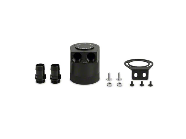 Quality Construction. This baffled oil catch can kit includes a high-flow and black anodized can with a powder-coated and durable mounting bracket. This kit also comes with CNC-machined aluminum hose barbed fittings. All necessary hardware has been included in this kit for hassle-free fitting.