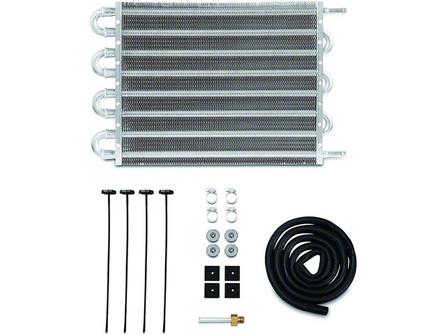 Prolongs Transmission Life. Mishimoto’s Mustang Automatic Transmission Oil Cooler Assembly is the perfect addition to keep your transmission running smoothly. This cooler features an efficient tube and fin design with gargantuan 12 Inch x 10 Inch x 0.75 Inch dimensions for superior airflow. As a result, this oil cooler provides dramatic temperature reduction to keep your transmission lubricated and extend the life of your transmission.