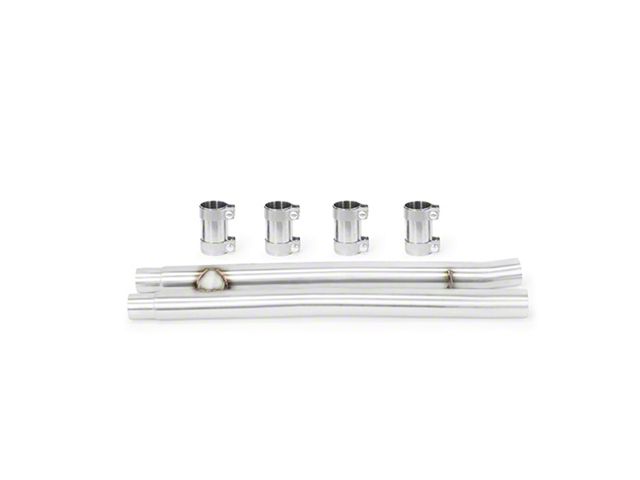 Design. The H-pipe design of the Mishimoto Cut and Clamp H-Pipe gives a more profound and more forceful exhaust tone compared to the factory exhaust system. It includes a fulfilling growl to your Mustang GT, enhancing its presence and making an exhilarating driving experience.