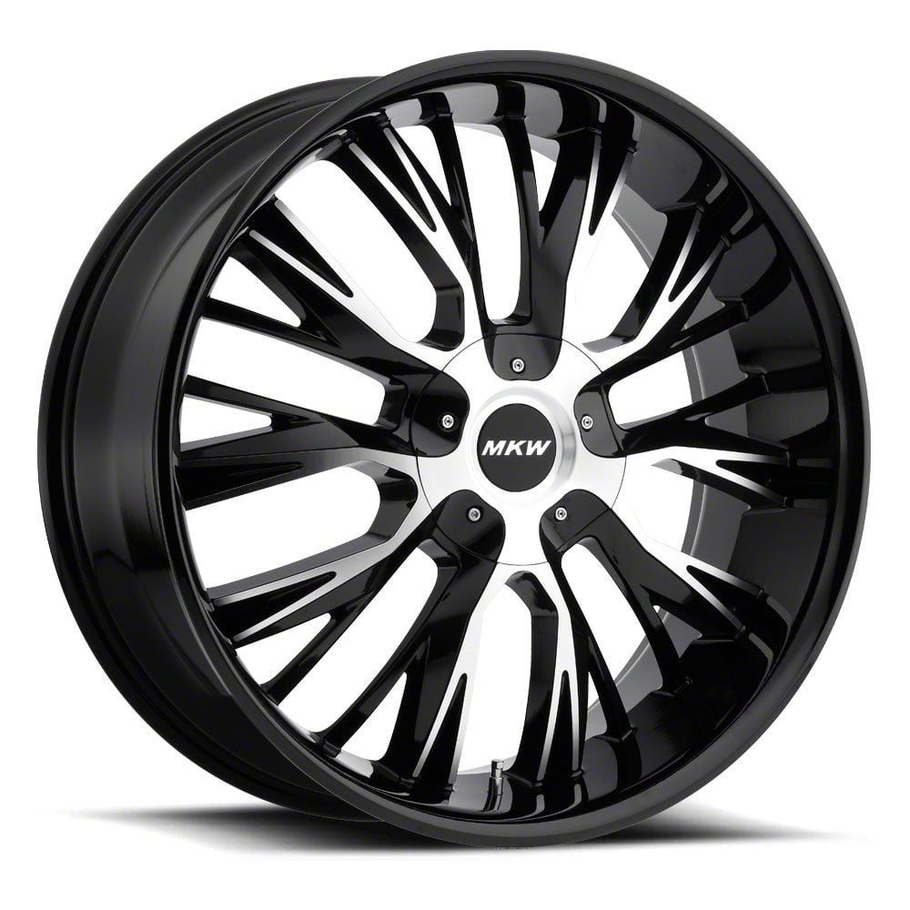 This 20x8.5 MKW M122 Gloss Black Machined Wheel; 20x8.5; 45mm Offset is completed in a gloss black finish with steel machined accents that will be the envy of everyone. For added looks and strength, there is a clear coat that protects against whatever the road throws at you.
