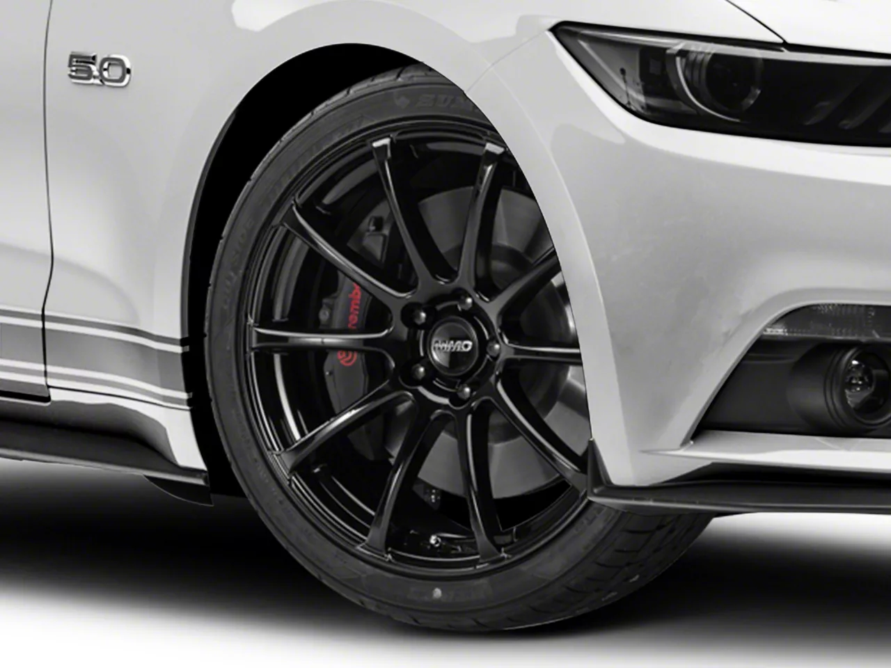 Application. This MMD Axim Gloss Black Wheel; 20x8.5 with a backspace of 6.128 Inch, 155.7mm and bolt pattern of 5 x 114.3mm (5 x 4.5-Inch) ensures impeccable alignment and unmatched driving stability. Specifically designed for 202015-202023 Mustang GT, EcoBoost, V6 models, each wheel is sold individually.