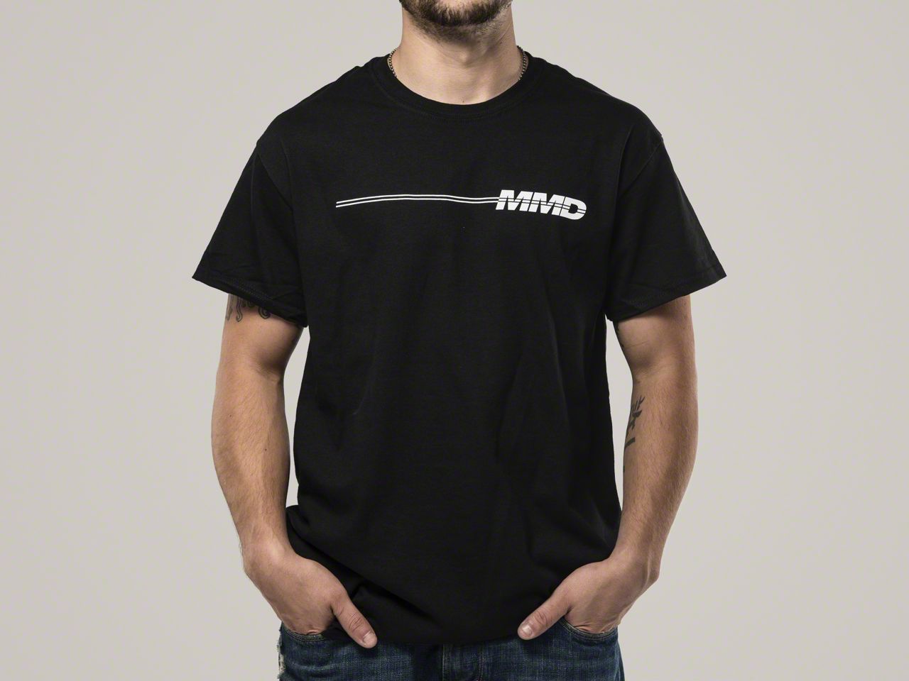 Modern Muscle Design. Let everyone know whose parts you're running on your customized Mustang with a MMD T-shirt. This bold black short-sleeve t-shirt features the MMD logo across the back, with a smaller MMD logo on the front left chest.