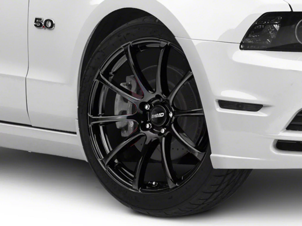 Application. This MMD Axim Gloss Black Wheel; 20x8.5 with a backspace of 6.128 Inch, 155.7mm and bolt pattern of 5 x 114.3mm (5 x 4.5-Inch) ensures impeccable alignment and unmatched driving stability. Specifically designed for 2010-2014 Mustang models, each wheel is sold individually.